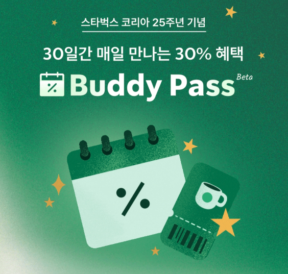 스타벅스의 버디패스는 고객들이 친구나 가족과 함께 스타벅스를 더욱 즐길 수 있도록 돕는 프로그램입니다. 이 패스를 이용하면 정해진 기간 동안 무료 음료나 할인 혜택을 제공받을 수 있습니다.